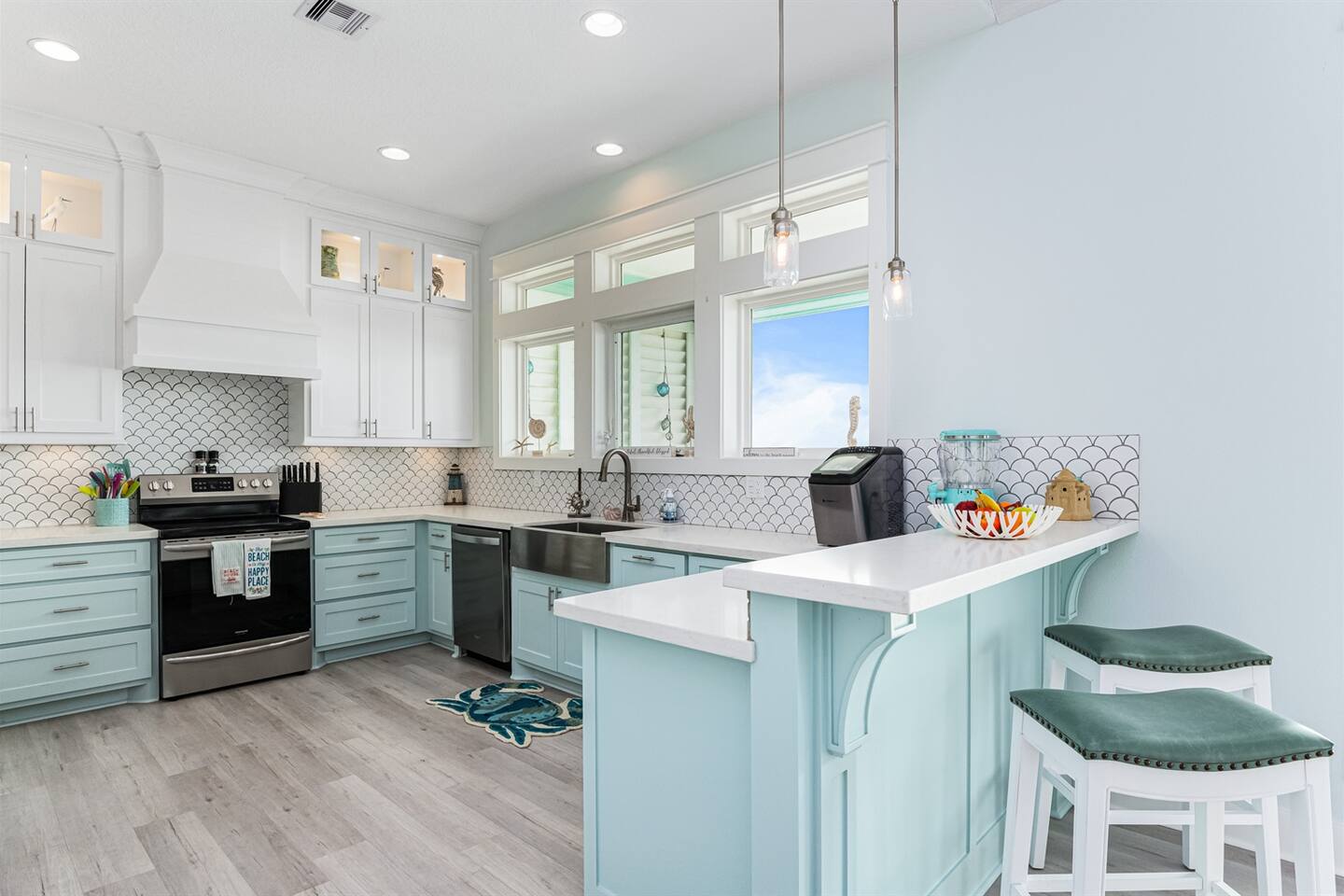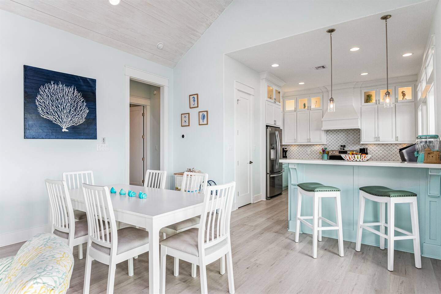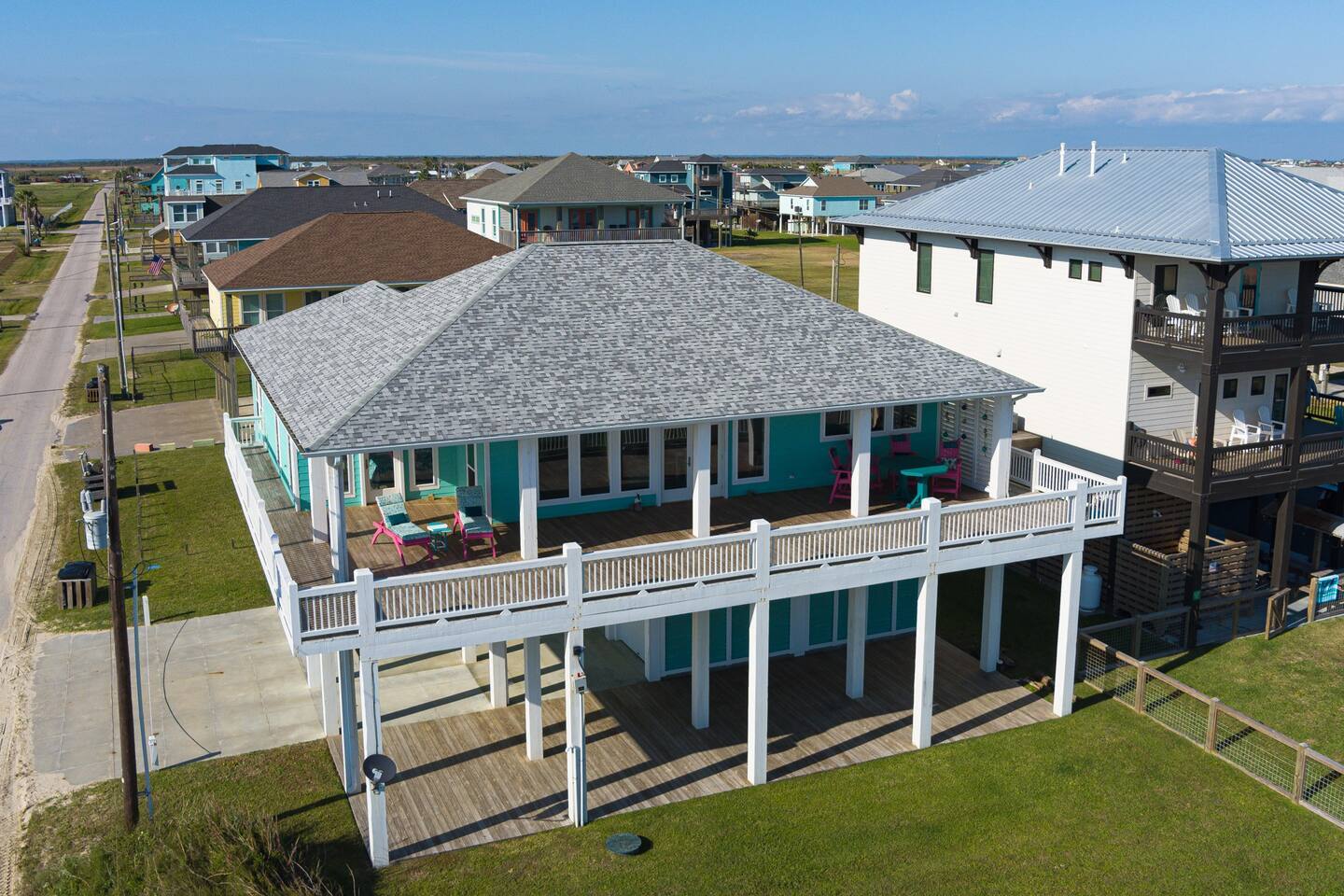 Indulge in the Splendor of our Spacious Open-Concept Living Area, with Towering Ceilings and Floor-to-Ceiling Windows that Showcase Mesmerizing Gulf Views. Discover Culinary Bliss in Our Chef's Kitchen, Fully Stocked for All Your Cooking and Baking Desires. Find Ultimate Comfort in Our Four Bedrooms: King, Queens, and Bunkbeds, Ensuring Everyone Feels at Home. We've Thought of Everything, Providing Towels, Linens, and Beach Towels for Your Convenience. Step Outside to the Expansive Patio Beneath the House – Perfect for Games and Cookouts, Elevating Your Seaside Escape to Perfection.